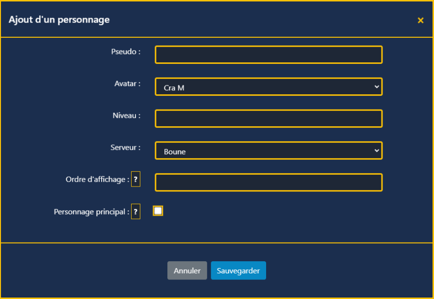 Pour les jeux multicomptes (Dofus 2, Rétro…), créez des personnages via le bouton "+" depuis "Gérer ma progression", "Mes stats" ou "Ma liste de jeux/persos".