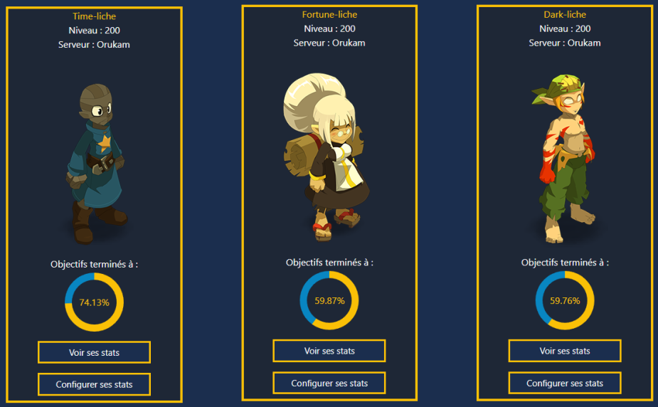 Pour les jeux multicomptes (Dofus 2, Rétro…), créez des personnages via le bouton "+" depuis "Gérer ma progression", "Mes stats" ou "Ma liste de jeux/persos".